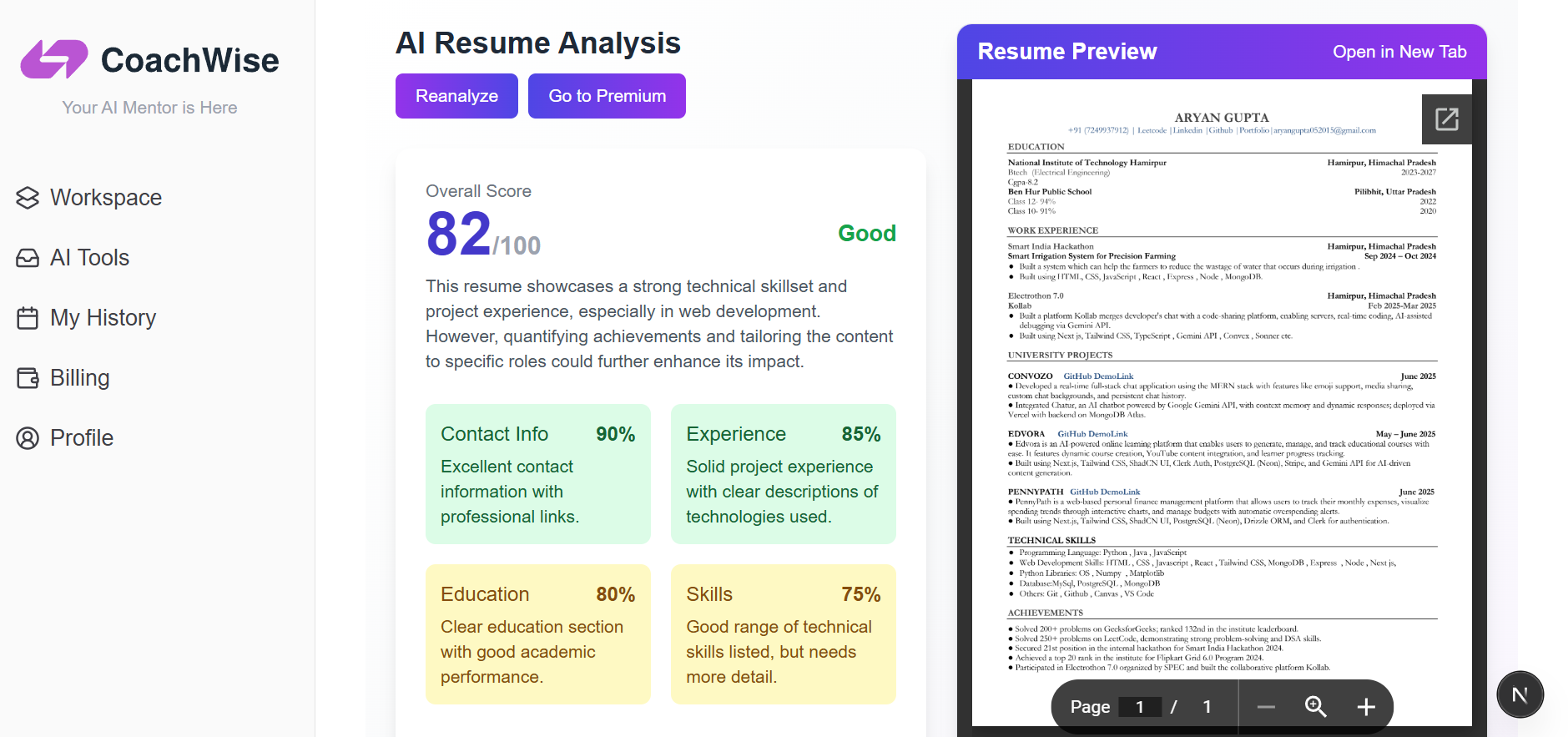 βCoachWise showed me the mistakes in my resume and helped me land two interviews in a week!β